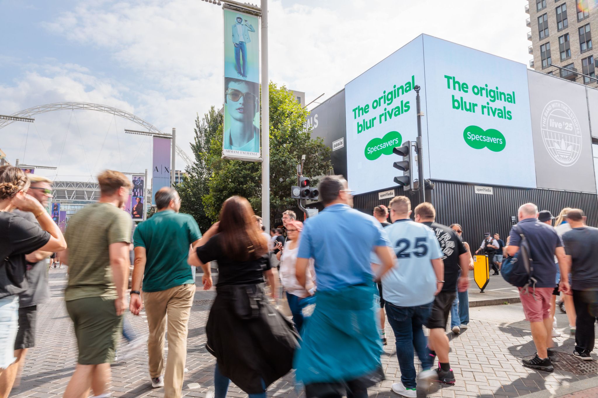 Cam așa sunt execuțiile OOH Specsavers, live în jurul Wembley Stadium, acolo unde Oasis, și nu Blur (!) bifează nu mai puțin de 5 concerte în perioada asta.