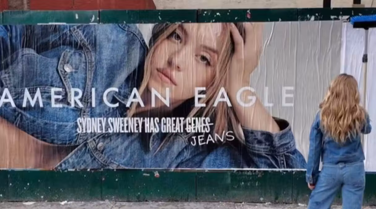 Ce poți spune, totuși, este că e cel puțin ciudat, în climatul politic & cultural actual, să decizi să scoți o campanie bazată pe un wordplay – la prima mână/a la chat gpt, dacă ne întrebi pe noi – între „jeans” și „genes” – și Sydney Sweeney, the blonde-hair-blue-eyes-white-girl par excellence.